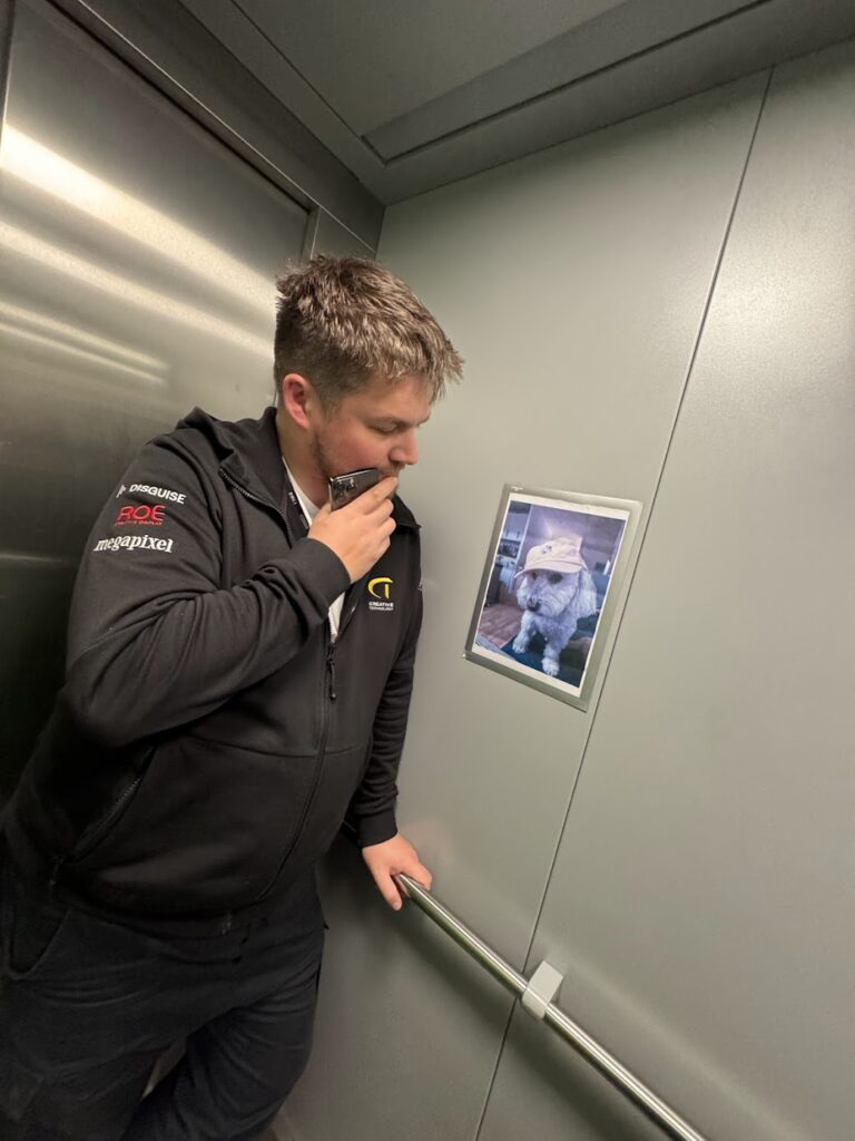 We were staying at the Senevita apartments for our time in Basel which was a really nice apartment, 15 mins walk to the venue. The Senevita is also an assisted living complex for the elderly and it was nice saying hello to the residents in the morning as they were going for breakfast and we were going to work. Most of the elevators int he complex had pictures of flowers in them but one was empty from the time we arrived there so we decided to print a picture of Sam’s dog Norman for the residents to enjoy. Unfortunately it was removed the following day but it was fun whilst it lasted.